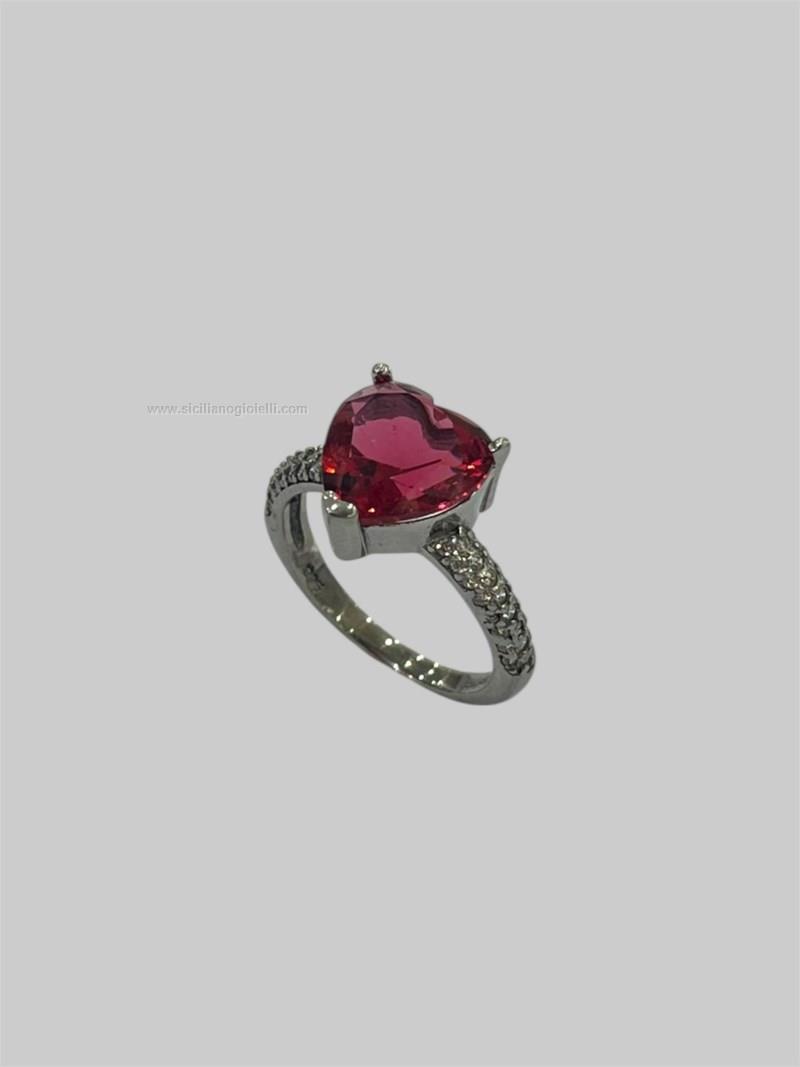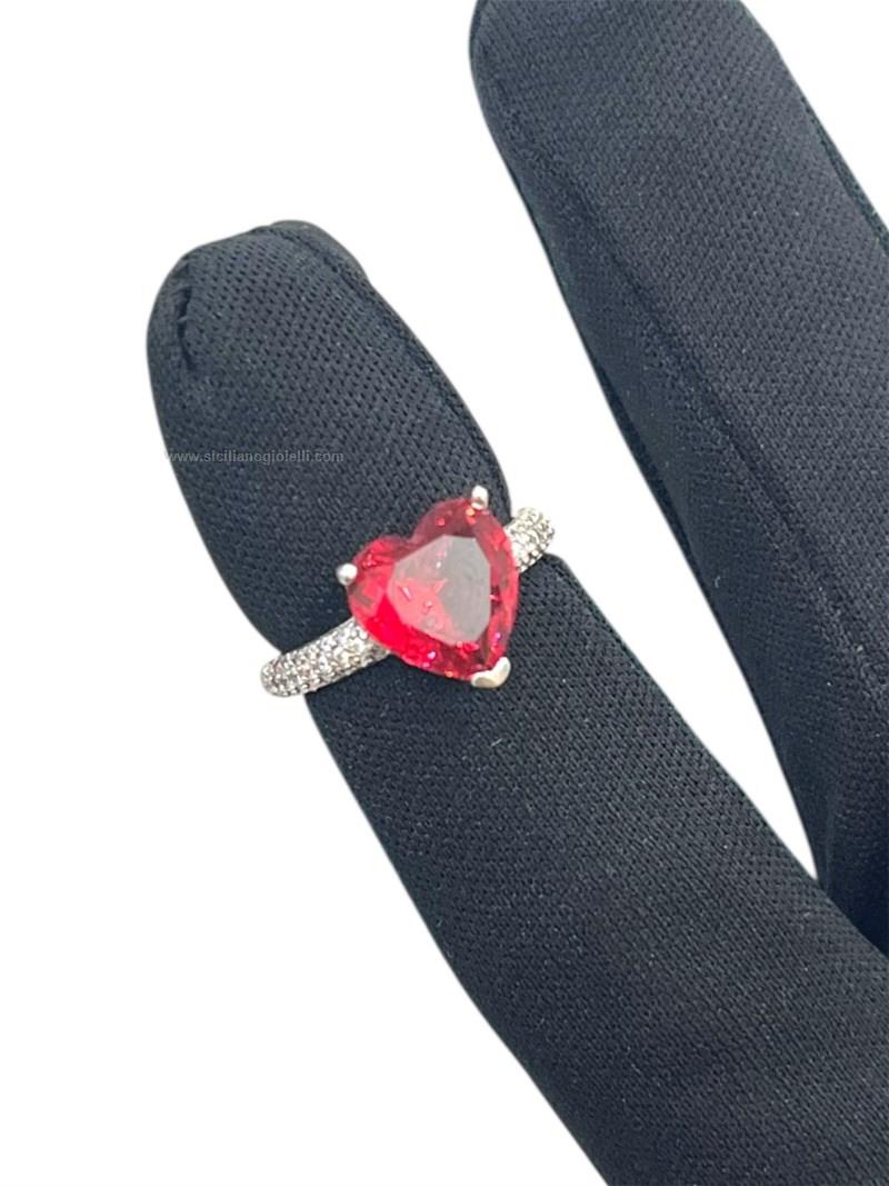 anello argento 925 con zirconi bianchi sul gambo e cuore rosso rubino centrale. misura unica 11. contattaci per maggiori info.
