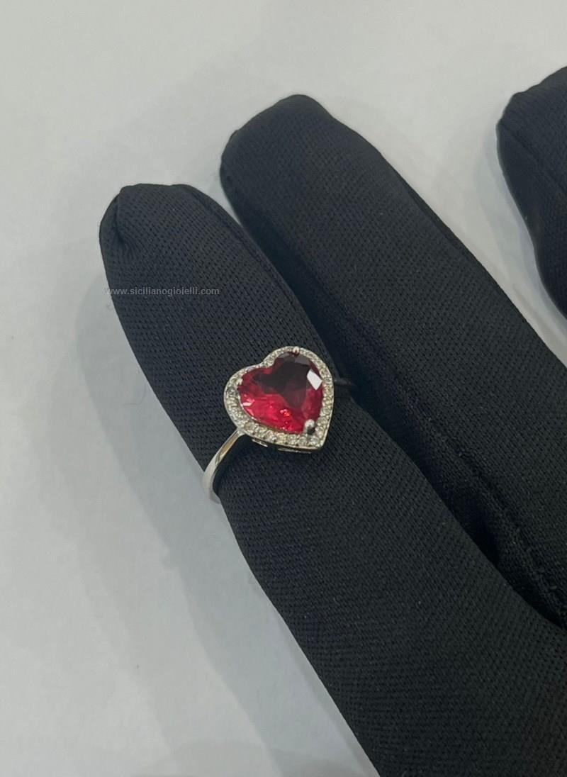 anello argento 925 con zirconi bianchi e cuore rosso rubino centrale. misura regolabile. contattaci per maggiori info.