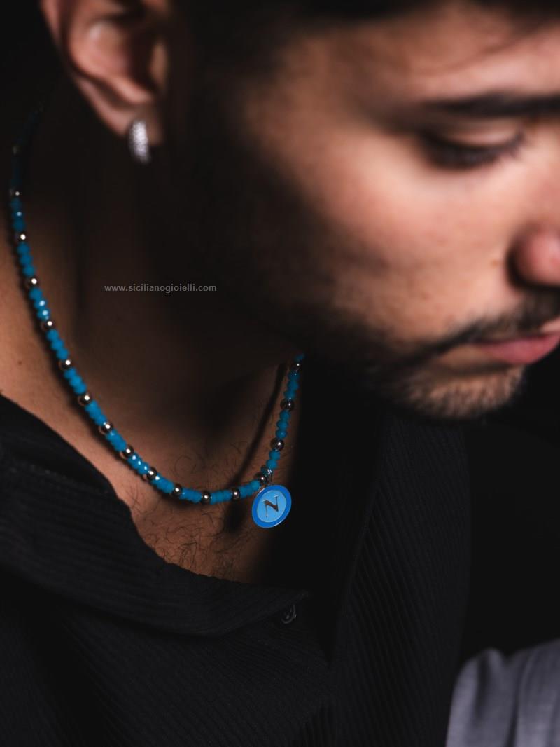collana con inserti in argento 925 e ciondolo smaltato in argento 925 possibilità di scegliere la lunghezza della collana.