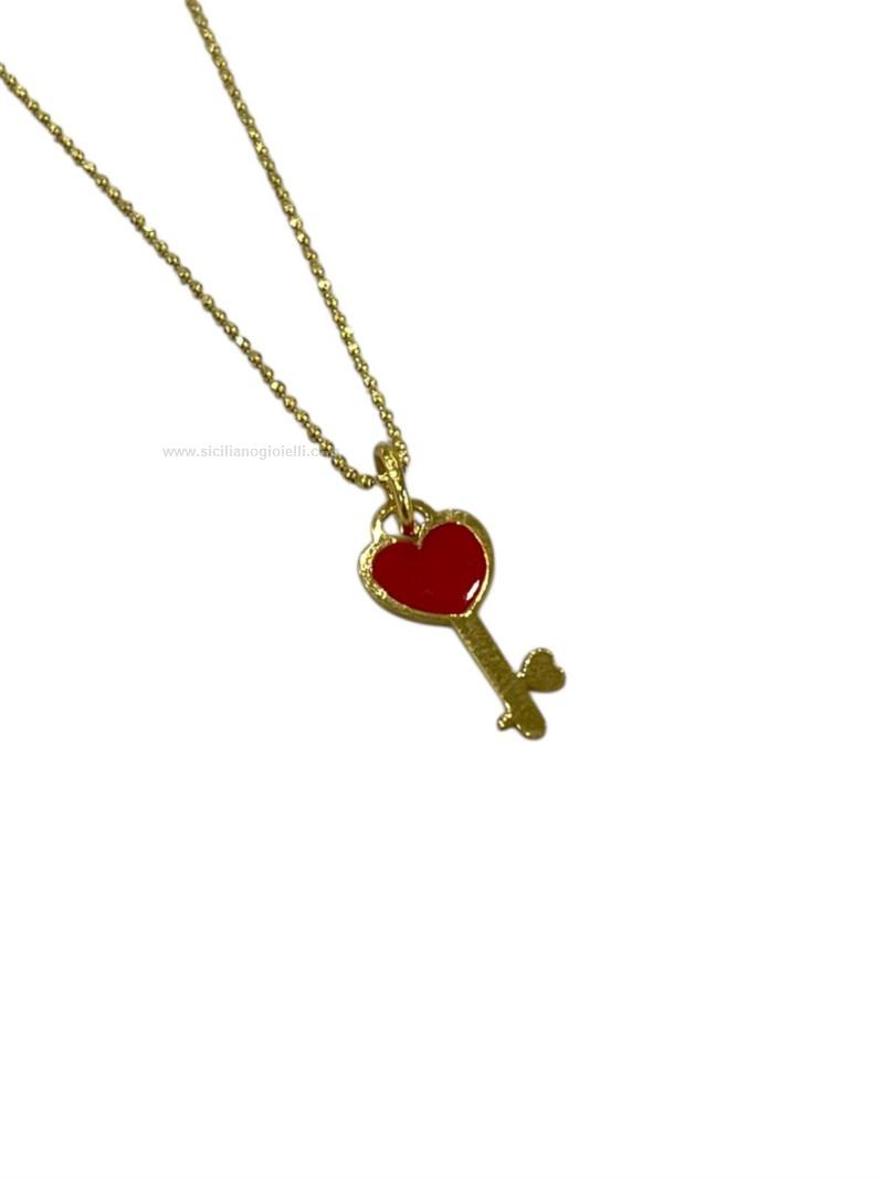 collana in argento925 dorato, cuore smaltato.