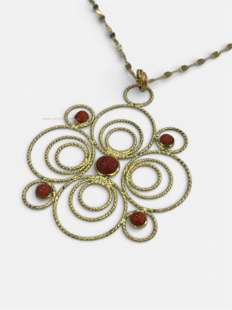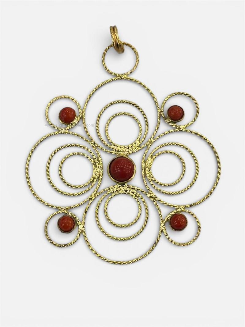 collana e ciondolo oro 18kt e corallo. misura ciondolo 40mm x 47mm.