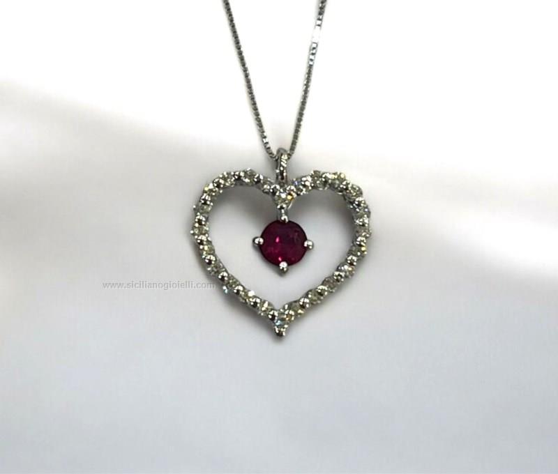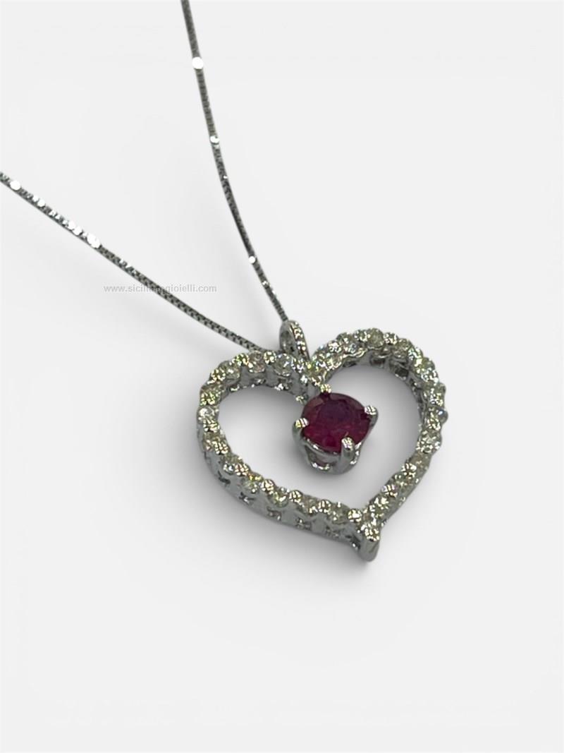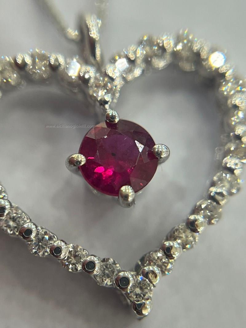 collana e ciondolo oro750, diamanti taglio brillante ct 0.16 e rubino ct0.22 contattaci per maggiori info.